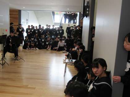 給食後の歯磨きを素早く終えて、たくさんの生徒が集まりました。
