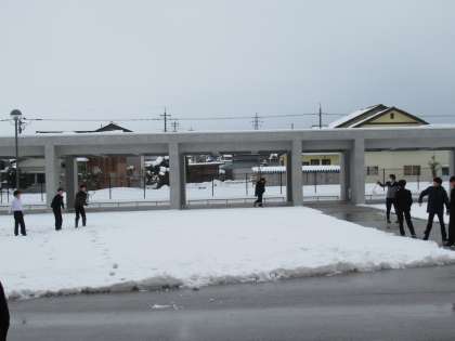 前庭で無邪気に雪合戦中です。このようなひとときが幸せですね。