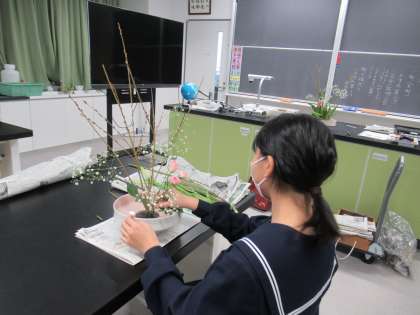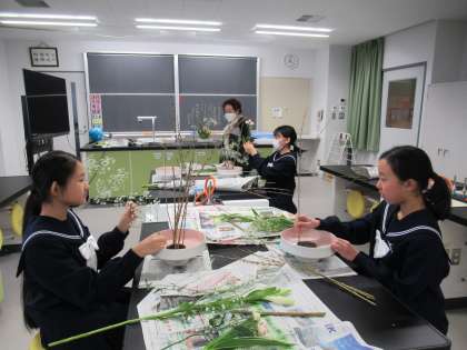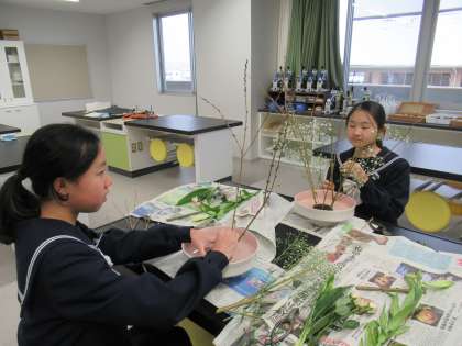 華道部の活動の日です。講師の先生にご指導を受けています。