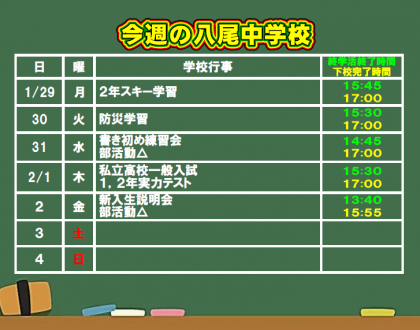 1月28日(日) 今週の八尾中学校