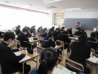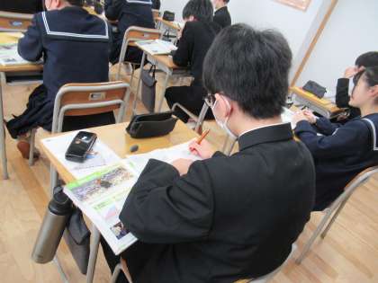 写真中・下は、社会の授業の様子です。貧困が課題である国について学習しています。