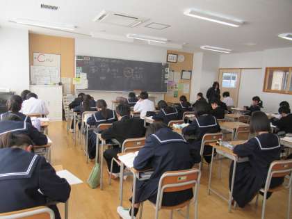 写真下は、数学の授業の様子です。おうぎ形の面積を求めています。