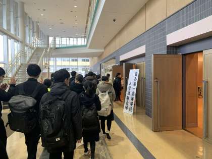 富山第一高校の受検会場は、八尾コミュニティセンターです。いつも隣にある建物で、慣れている、、、とはいうものの、受検となると話は別ですね。
