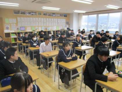 クラス全体で、1月1日当日の様子を振り返ったり、東日本大震災の際、石巻のある小学校の児童が日頃の訓練の成果を発揮し、一人一人が高台へ避難した様子を視聴したりしました。