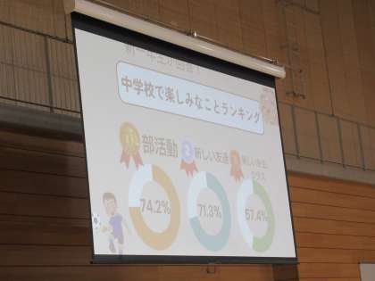 小学校6年生の皆さんにとった事前アンケート結果を紹介したり、部活動の様子をビデオ撮影して紹介したりしました。