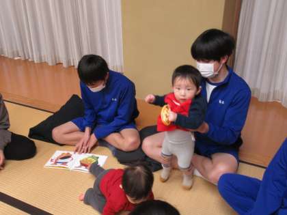 赤ちゃんたちは、お兄さんお姉さんに大喜びです。
