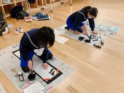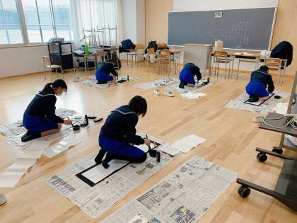 一筆入魂!だんだん作品も上手になっていきます。本番まであともう少し!頑張れ八中!!
