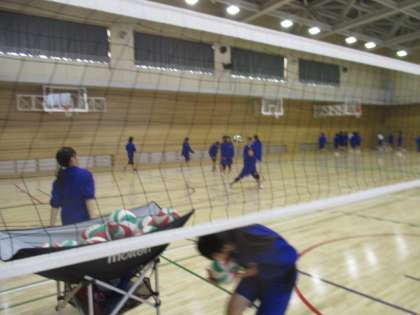 体育館では、バスケットボール部とバレーボール部が活動しています。