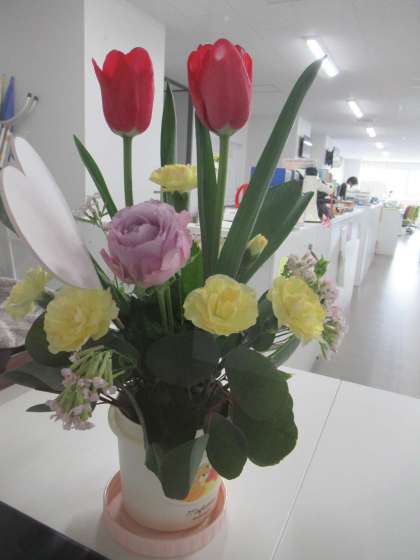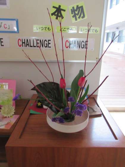 生徒玄関前と校長室の花が変わりました。チューリップが春の訪れを感じさせますね。