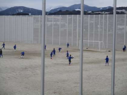 グラウンドでは元気な声が響き渡っています。もう春が来たような光景です。
