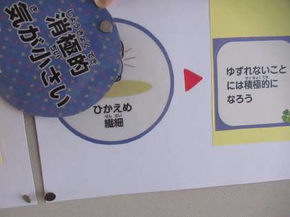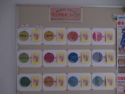 保健室前の掲示版も「質のよい睡眠」から今度は、ポジティブ思考にチェンジしています。