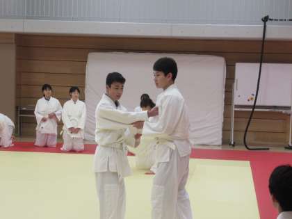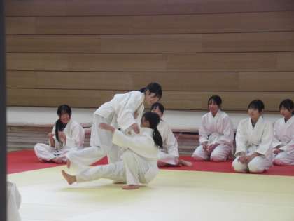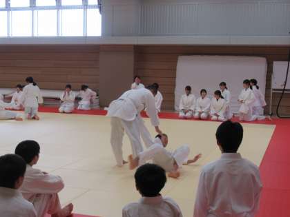 試合形式で行っています。学習したことを生かすチャンスです。技が決まったかな。