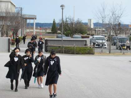 昨日は、八尾町では最高気温が20.6度と、2月の観測史上最も高くなりました。今朝も暖かいです。風がとても強いですが、自転車通学生もいます。この後、天候が崩れ、気温が下がる予報が出ています。寒暖差が激しい中、体調を整えて、明日からの学年末考査に臨みましょう。