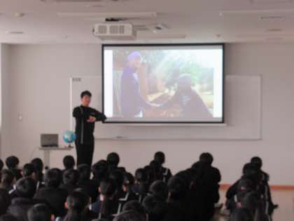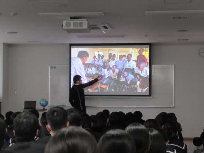 今月末で離任される理科の先生が、自身のアフリカでの体験を基に生徒に熱く語ってくださいました。
