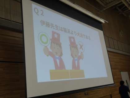 まずは、○×クイズです!みんな盛り上がっています。最後は、一緒に楽しむお別れ会です。