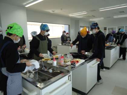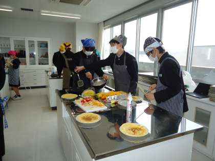 教室の中は、甘い香りが漂い、調理に集中しています。