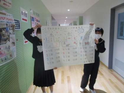 図書委員会が掲示物を作成しました。読書習慣を身に付けてもらうために、いろいろなアイディアを出し合っています。