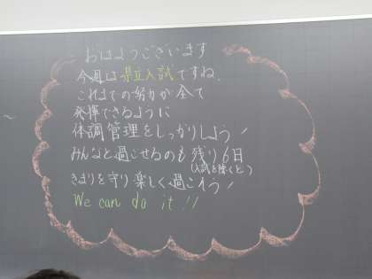 入試の日を除くと、3年生が登校してくる日はあと6日となりました。