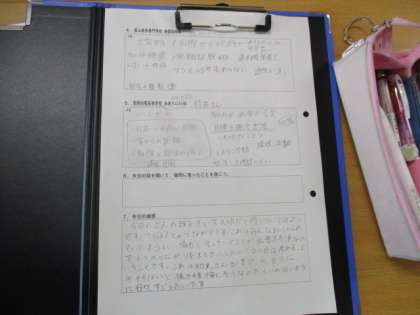 学んだことを共有しています。クラスによって振り返りの方法が異なりますね。