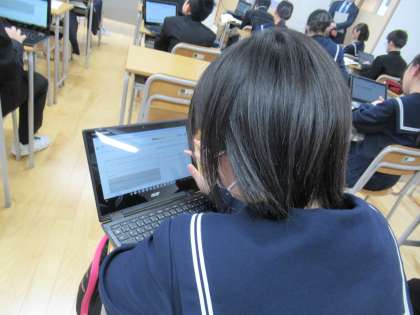スプレッドシートに考えを記入し、スクロールしながら友達の多様な考え方に触れました。