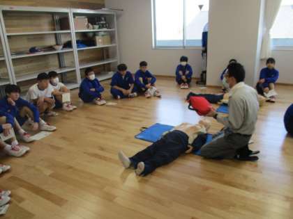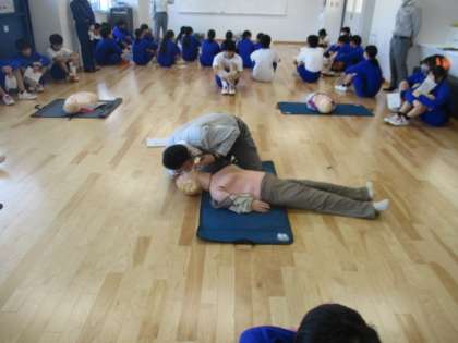 気道確保やAEDの使い方を学んでいます。