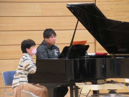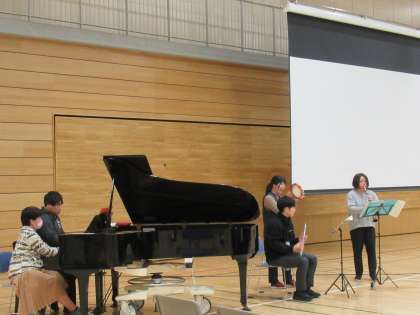 先生方が「3月9日」を演奏しました。生徒は手拍子をしながら、嬉しそうに演奏を聴いていました。