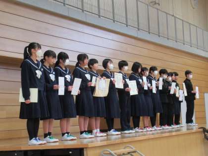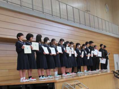 1月に行った書き初め大会を初めとするたくさんの受賞者の報告会を行いました。