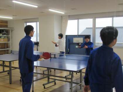 卓球部は、集会室で練習中です。 廊下で、トレーニング中の部活動もあります。