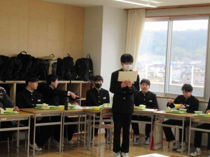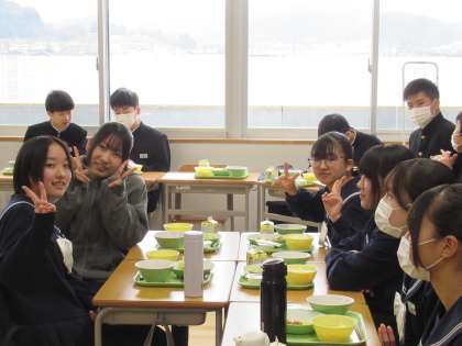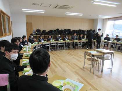 義務教育最後の給食です。何回食べてきたでしょう。みんなと食べた給食は、とても美味しかったですね。