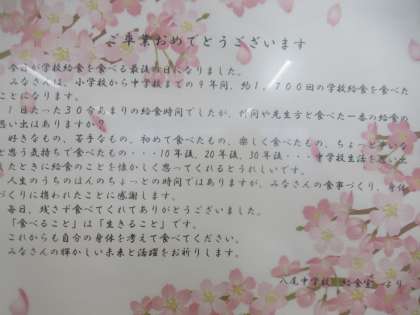 3月13日(水) 3年生 最後の給食 その4