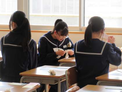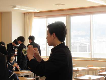 教室で、メッセージを読んでいます。もう既に涙腺崩壊している生徒も、、、。