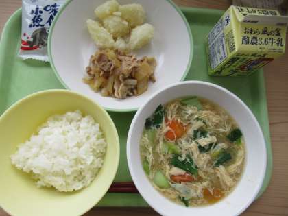 かき玉汁は、副交感神経を高め、不安を和らげ、リラックス、癒し効果が期待できます。 さらに、栄養満点、美肌効果、脳細胞を活性化し、免疫力を高めます。 かきたま汁で1日の疲れを取り、明日に向かいましょう。給食もあと1回となりましたね。