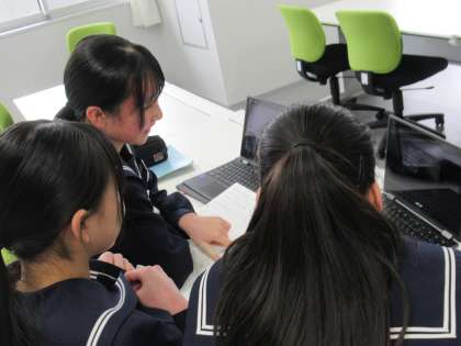 生徒は、世界遺産や互いの国の風習を紹介し合っています。