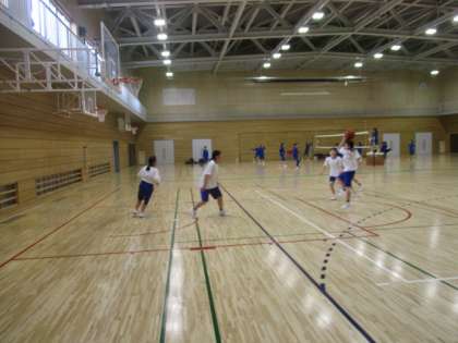 バスケットボール部、バレーボール部も元気な声を掛け合って練習に取り組んでいます。