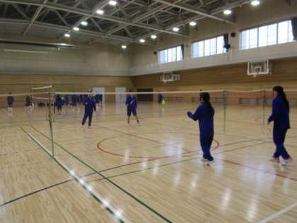 バドミントン部は、試合形式で練習しています。
