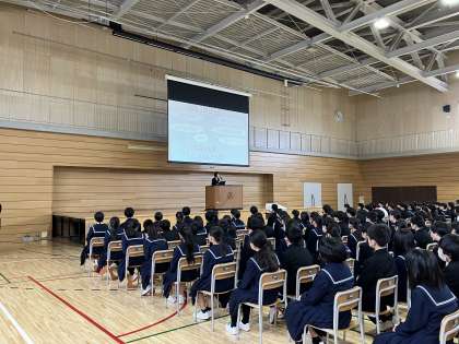 生徒は、背筋をピン!と伸ばして真剣に話を聴いていました。