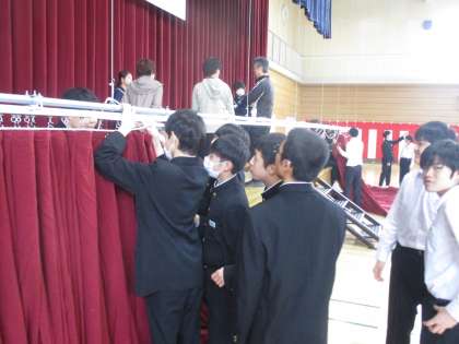 体育館は、3年生が卒業式での経験を生かして、テキパキと準備を進めています。