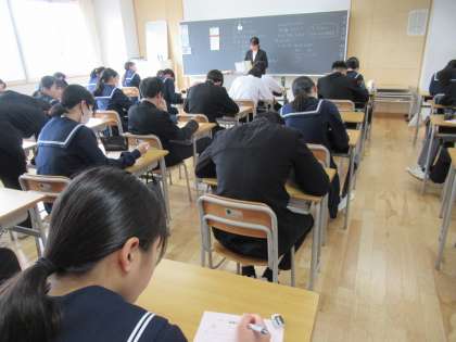 「3年生になって」を書いています。みんなぎっしり書いています。今のこの熱い思いを忘れずに、実現に向けて頑張りましょう。1年後が楽しみです。