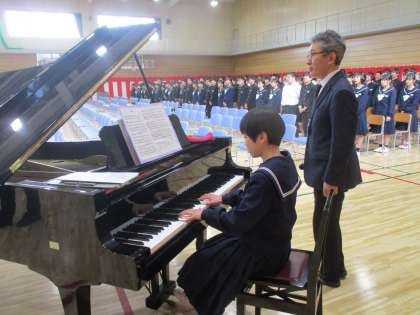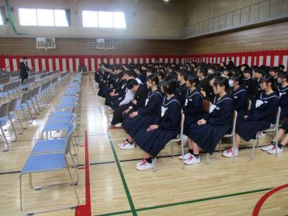 本日3限目、2,3年生は体育館で午後に挙行される「第3回 入学式」の練習を行いました。