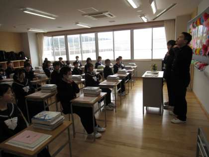 さっそく、教室で入場の仕方等を説明しています。さすが3年生!