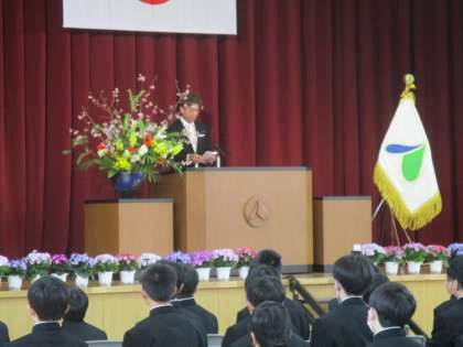 校長先生から「開校して3年目である今年のキーワードは、『つむぐ』です。開校から、「つくり」、「つないで」きたことを、布を織るように縦糸と横糸を紡ぎ、さらに素敵な八尾中学校にしていきましょう。」と式辞をいただきました。