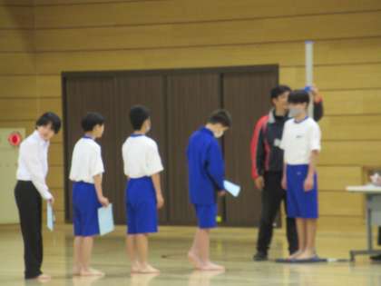 発育測定を行っています。目に見える部分での成長(体)と、目に見えない成長(心)の二刀流を目指しましょう。