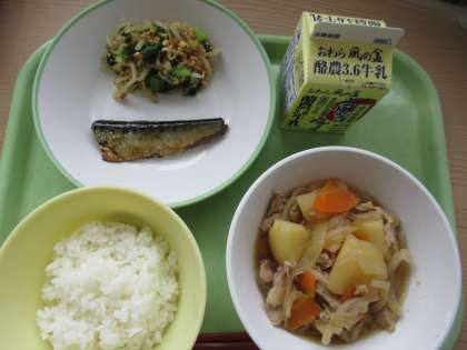 肉じゃがもいわしの梅煮も味がしっかり付いていてご飯が進みますね。たくさん食べてパワーアップしましょう。