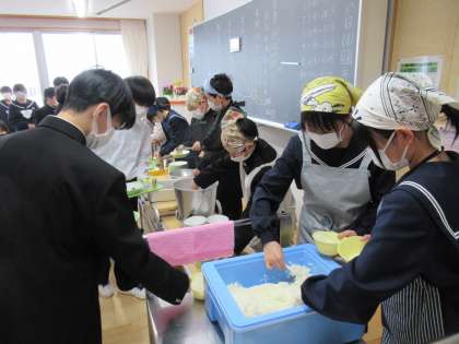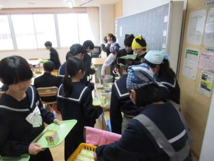 量は多くなっても、給食当番の仕事は変わりません。小学校での経験を生かしてテキパキ準備しています。