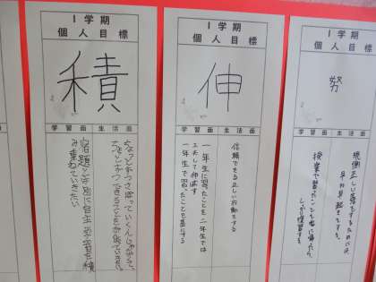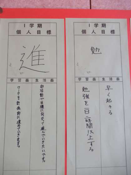 漢字1字で目標を表し、生活と学習の2方向から具体的な目標を書きました。