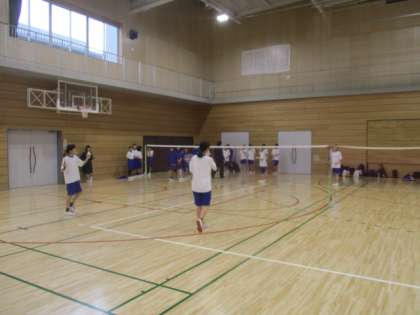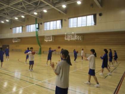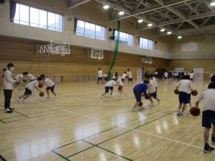 体育館でも新入生が先輩に教わりながらトレーニングに励んでいます。