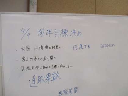 学年代表を中心として、学年生徒会のメンバーが、3年間の集大成に向けて学年目標を考えています。