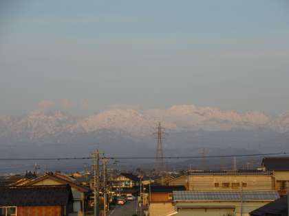 夕焼けがとても綺麗です。八尾のニワが夕日に照らされて、茜色になっています。明日も晴れそうですね。