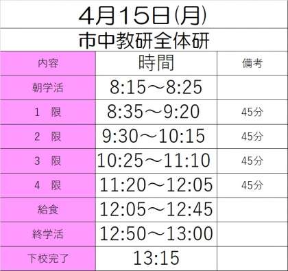 今週から授業も本格的にスタートします。土曜日には、授業参観も控えています。2週目も頑張りましょう!