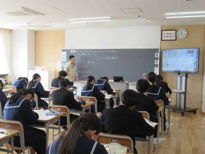 写真中は、社会の授業の様子です。第1次世界大戦について学習しています。